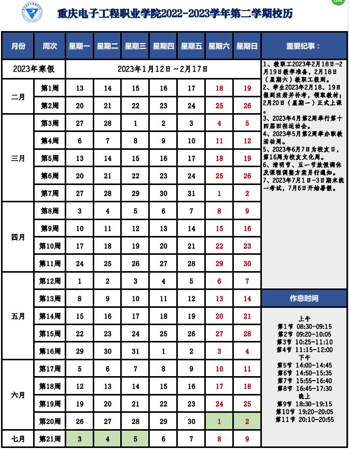 2022~2023学年第二学期校历