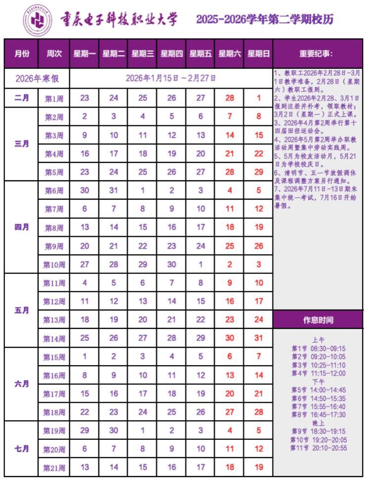 2025~2026学年第二学期校历