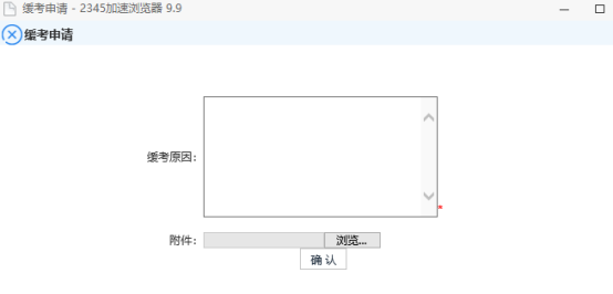 步骤三:根据提示框填写“缓考原因”,上传附件后点击确认。