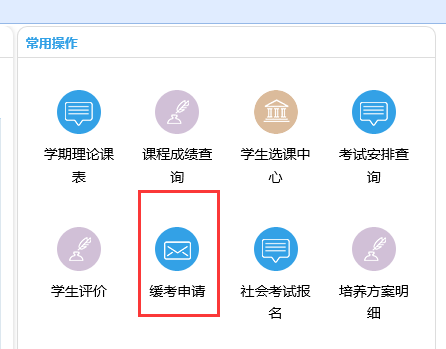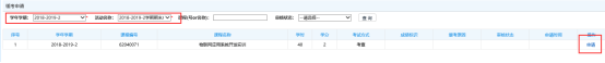 步骤二:选择“学年学期”、“活动名称”,点击查询,出本学期所有课程,找到需要申请的缓考科目,点击右侧“申请”