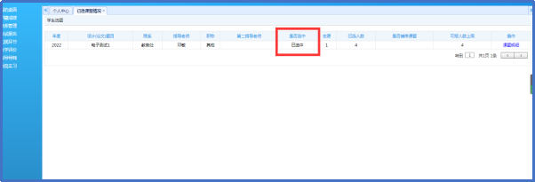 【中否选中】状态为【已选中】,表示指导教师同意选择该学生;