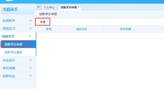 操作位置:实践环节 – 创新学分 – 创新学分申报