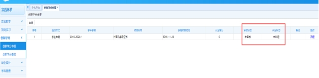 2)认定过程中或认定不通过的可在“创新学分申报”中查询