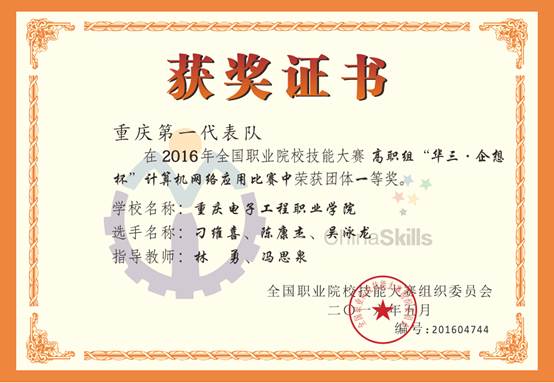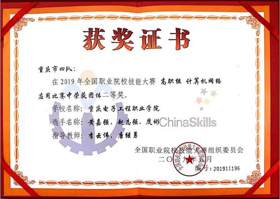 我校于2016年参加该赛项以来,依托通信工程学院的通信系统运行管理专业及华为-重电ICT学院,在该赛项上取得了良好的成绩。四年以来,获得了全国一等奖两次,二、三等奖各一次,为学校赢得了荣誉。
