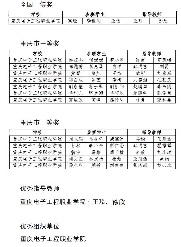 近日,重庆市教育委员会发布了《关于2019年全国大学生电子设计竞赛(重庆赛区“TI”杯)获奖情况的通报》,全市30所参赛学校的435个参赛队(其中:本科院校 352队、高职高专院校 83队)参加了本次比赛,我校获得全国二等奖1项,重庆市一等奖7项,重庆市二等奖5项,优秀指导教师2名。同时,我校获得优秀组织单位奖。