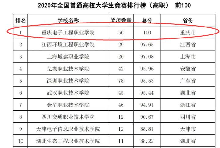 2020年全国普通高校大学生竞赛排行榜(高职)发布,重庆电子工程职业学院排全国第一!