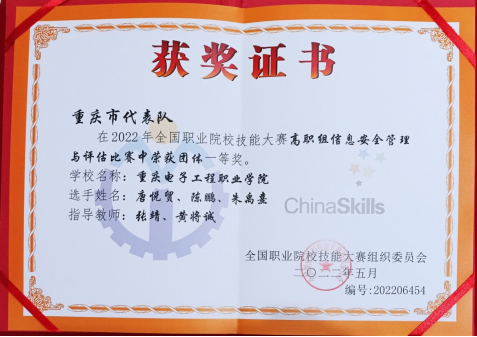 【技能竞赛获奖】我校学子在2022年全国职业院校技能大赛高职组“信息安全管理与评估”赛项以第一名的优异成绩荣获全国一等奖