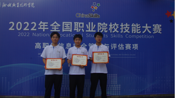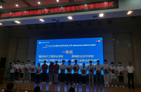 2022年8月15日,经过激烈角逐,我校人工智能与大数据学院信息安全技术应用专业学生在全国职业院校技能大赛高职组“信息安全管理与评估”赛项中,以第一名的优异成绩荣获全国一等奖。