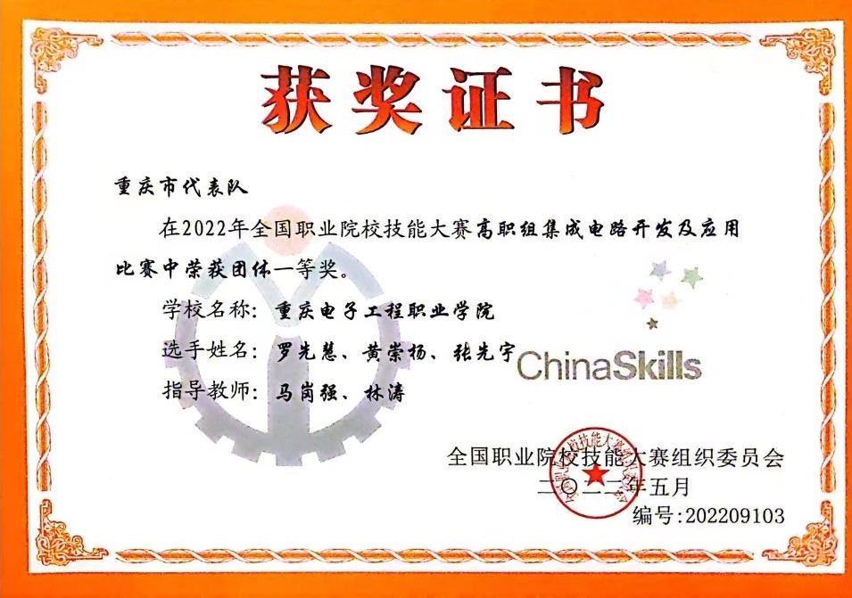 【技能竞赛获奖】我校电子与物联网学院集成电路竞赛团队荣获2022年全国职业院校技能大赛“集成电路开发及应用”赛项一等奖