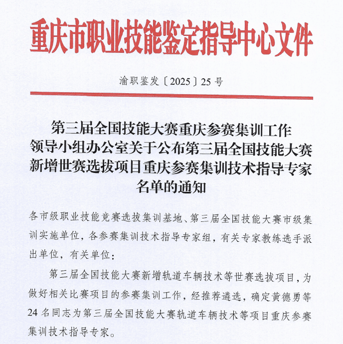 我校3名教师入选新增世赛选拔赛项目重庆集训技术指导专家名单
