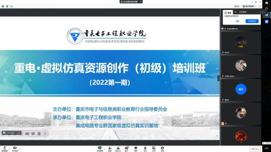 为贯彻落实国务院《国家职业教育改革实施方案》和教育部《职业教育提质培优行动计划(2020-2023)》《职业教育示范性虚拟仿真实训基地建设指南》等文件精神,推动虚拟仿真技术在职业教育中的深入应用,提升职业院校虚拟仿真实训基地的资源建设与应用水平。2022年12月14日由重庆市电子与信息类职业教育行业指导委员会主办、我校集成电路虚拟仿真实训基地承办,为期5天的“2022年第一期虚拟仿真资源创作(初级)培训班”顺利开班。来自全国14个省市的30所职业院校的246名师生报名参加了此次培训。