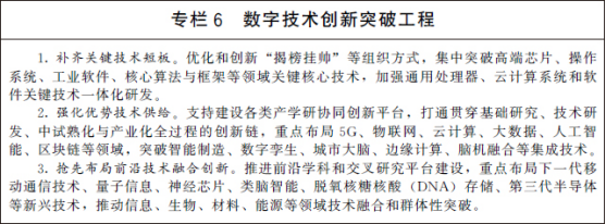——数字产业化水平显著提升。数字技术自主创新能力显著提升,数字化产品和服务供给质量大幅提高,产业核心竞争力明显增强,在部分领域形成全球领先优势。新产业新业态新模式持续涌现、广泛普及,对实体经济提质增效的带动作用显著增强。