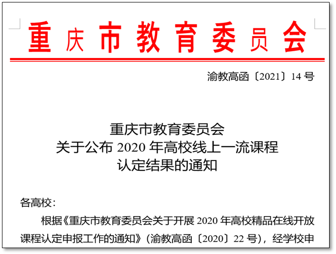我校6门课程入选重庆市2020年高校线上一流课程