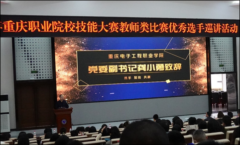 为发挥全国职业院校技能大赛教师类比赛优秀选手的示范引领作用,进一步推动职业教育课堂教学改革,整体提升全市职业院校教师教学能力、信息素养、教学设计水平,重庆市职业院校技能大赛教师类比赛优秀选手巡讲活动(高职第三组)于2023年3月16日在重庆电子工程职业学院成功举行。重庆市教育委员会干部付斌、重庆市教育科学研究院教研员付勇、重庆电子工程职业学院党委副书记龚小勇以及市内27所高职院校的教师代表参加了活动,巡讲活动由重庆电子工程职业学院教务处处长童世华主持。
