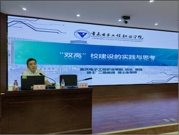 聂强校长以习近平总书记对职业教育工作作出的重要指示开篇,结合“双高计划”十大改革发展任务,围绕专业集群,培育产业高端人才、科技创新,服务智能产业升级、深化治理,激发办学新活力三个方面展开,详细阐述了重庆电子工程职业学院在专业群建设、科技创新、内部治理等方面的重点举措和典型经验。