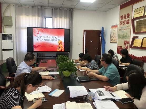 为进一步抓好主题教育,6月25日下午,学校党委副书记龚小勇同志以“学习贯彻党的创新理论”为主题,在7322党员活动室为教务处党支部全体党员讲专题党课。