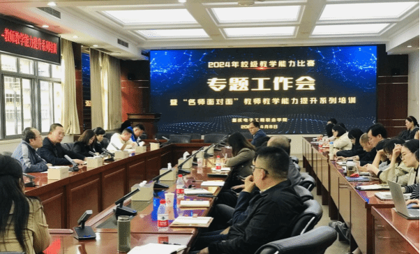 2024年4月8日下午2点30分,教务处在博润厅召开了2024年校级教学能力比赛专题工作会暨“重电名师面对面”教师教学能力提升系列培训。出席会议的有:党委副书记龚小勇、教务处处长童世华、教务处副处长兼双高办常务副主任代才莉、各二级学院教学副院长、23支决赛团队成员代表及团队指导教师,童世华主持会议。