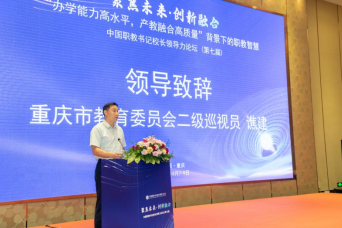 尚强智慧教育研究院院长/西部职业教育研究院副院长俞鑫、重庆电子科技职业大学党委书记张伟、中国高等教育学会职业技术教育分会理事长周建松、重庆市教育委员会二级巡视员谯建等领导分别进行了致辞。
