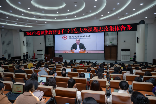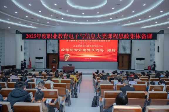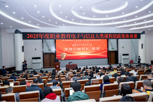 2025年11月27日,职业教育电子与信息大类课程思政集体备课活动在重庆电子科技职业大学顺利举办。本次集体备课活动由全国工业和信息化职业教育教学指导委员会主办,由我校和深圳职业技术大学共同承办,工业和信息化部教育与考试中心、重庆市职业教育思政课程与课程思政教学指导委员会、重庆市电子与信息类职业教育行业指导委员会、广东省职业学校教学管理工作指导委员会协办,来自全国30余所职业院校的260余位教师现场参会。