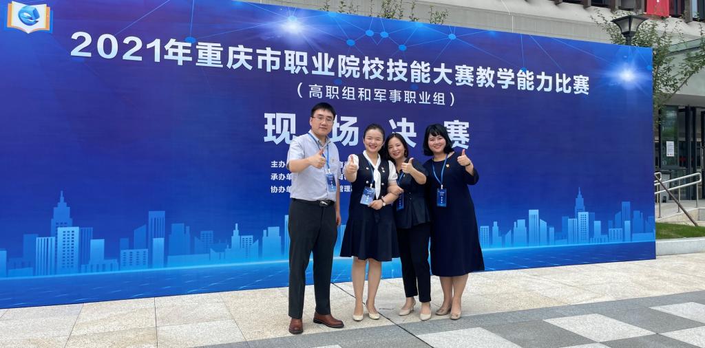 2021年9月11日,在重庆城市管理职业技术学院进行了现场决赛,经过激烈的角逐,我校公共基础组的尚杨团队、敬官旭团队、杨梅团队、专业技能课程一组的牟向宇团队、专业技能课程二组的林学山团队获得一等奖;公共基础组的蒋艺团队、专业技能课程一组的王聃黎团队、专业技能课程二组的汪鑫团队获得二等奖。其中,尚杨团队、杨梅团队、牟向宇团队被推荐参加2021年全国职业院校技能大赛教学能力比赛。