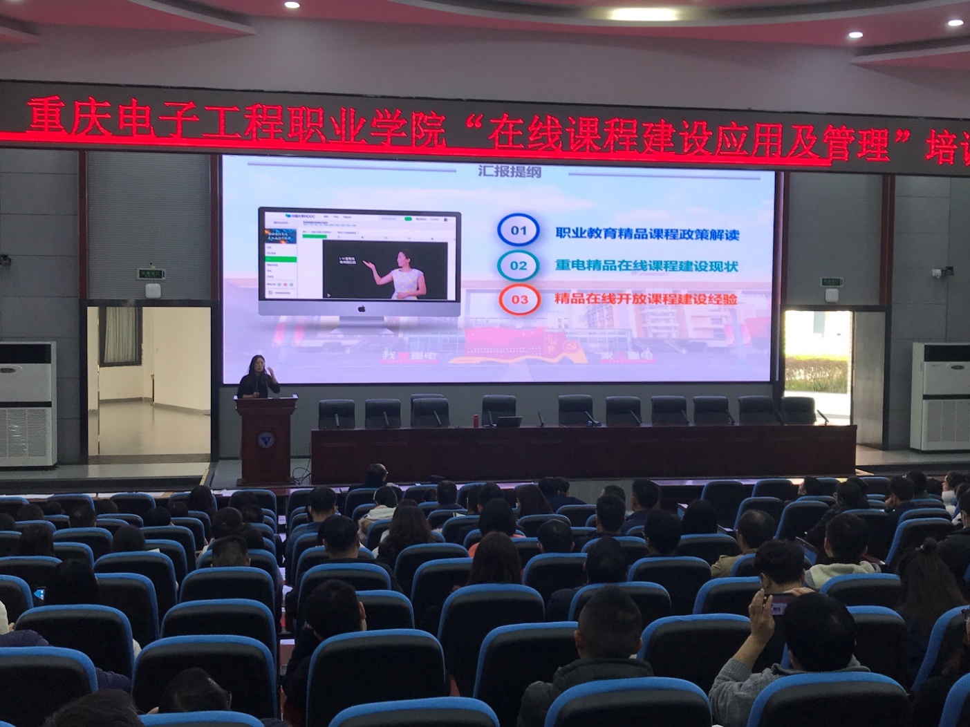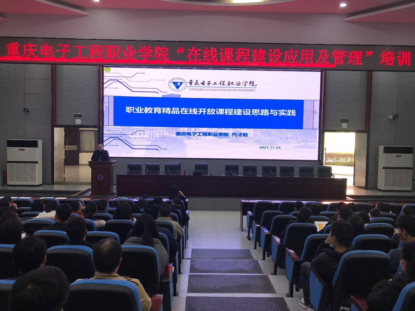在培训时,代才莉结合职业教育发展方向、学校建课现状以及自己在建课过程中的经验与老师们进行了交流和分享。
