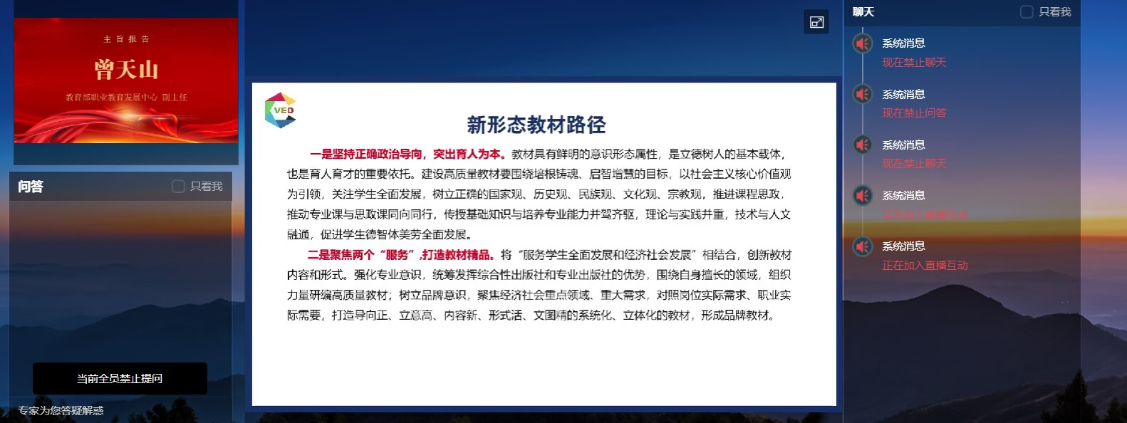 为推进我校新形态教材工作改革创新,进一步打造更多职业教育精品教材,2023年7月19日教务处组织各教材管理部门工作人员和各二级学院教师参加了高等教育出版社新形态教材建设线上经验交流会。系主任、专业主任、模组主任、课程负责人及教材建设骨干教师等共400余人参会。